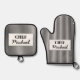 Set De Manoplas Modern Custom Personalized Chef Black Striped