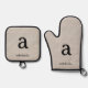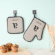 Moderno Monograma Elegante Lino Nombre Inicial Oven Mitt & Pott Holder Set. Monograma de tipografía simple y clásica de fácil personalizar. ¡Idea de regalo de nombre monogramada perfecta! Nota: No se utiliza ninguna línea real en la elaboración de este diseño o la creación de este artículo.