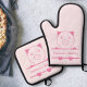 Un juego de soporte de Oven Mitt & Pot rosado con un cerdo monocasco y un texto de personalizable en su interior. Perfecto para hacer un regalo a un granjero, mejor amigo o recién casados o sólo para su decoración de cocina!