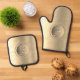 Este efecto de acero de oro le da un toque metálico a su hormigón y portaplatos de horno. En el medio, una forma redonda parece tallada en acero, es el lugar perfecto para dar la bienvenida a tu monograma único con un efecto grabado. Muy elegante y moda, estos accesorios de cocina sorprenderán a todos.