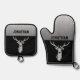 Nombre de caza de ciervos plateados y negros - añade tu nombre a este juego de cocina de aspecto elegante. Oven Mitts y Pot Holder para el forastero que ama cocinar en la cocina, en la barbacoa o en la parrilla.