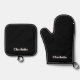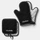 Personalizado personalizado elegante serif nombre de letra sif texto o monograma elegante estilo moderno Oven Mitt & Pot Holder Set. Personalizable de texto blanco sobre fondo plano sólido negro. Compruebe el resto de la colección Proyectos de Brighton para buscar elementos coincidentes y coordinados. No dude en enviar un mensaje para preguntas, solicitudes de colores, personalización o ayuda de diseño.