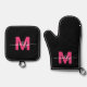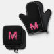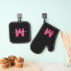 Set De Manoplas Monograma del nombre negro rosado caliente