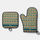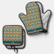 Set De Manoplas Monograma del patrón azul del Naranja retro boho