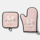 Monograma moderno Guión Girly Rubor Pink Inicial Oven Mitt & Pot Holder Set. Monograma de escritura elegante de fácil personalizar. ¡Idea de regalo de nombre monogramada perfecta!
