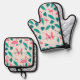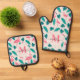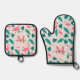 Monograma moderno Hojas tropicales Flamingo rosa caliente Oven Mitt & Pot Holder Set
