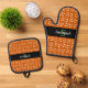 Añada estilo musical a su cocina con este llamativo juego de guante y soporte para ollas. Seguro que toca una fibra con los músicos, ambos objetos son un rico color naranja quemado, con un patrón de cuáqueres blancos. El horno de notas musicales mitt y el portaobjetos pueden personalizarse con un elegante monograma, formado por su nombre en blanco e inicial en verde. Un regalo divertido para los amantes de la música, para un florecimiento añadido al crear tus platos favoritos.