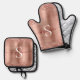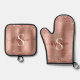 Este fabuloso Oven Mitt & Pot Holder Set presenta un fondo metalizado subió de color dorado con brillantes bordes Faux-Purpurina. Añade tu nombre e inicial para un toque personal.