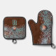 Set De Manoplas Monograma rústico marrón turquesa del país occiden