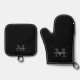 Este juego de manto y portamaletas del horno presenta un fondo negro con un monograma clásico gris y su nombre personalizado u otro texto en blanco. Añada fácilmente su propio monograma y nombre u otro texto haciendo clic en "Personalizar esta plantilla". Este elegante conjunto es el regalo perfecto para un chef, panadero o para quien le guste cocinar o asar.