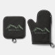Juego de soporte de Oven negro con paisaje montañoso y un texto de personalizable de color verde. Perfecto para el Día de la Madre del Padre, para hacer un regalo a tu madre, un chef de cocina o pastelería o para recién casados!
