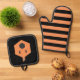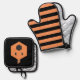 El Mosaico de Halloween Jack-o-Lantern con el soporte opcional de macetas de texto y el conjunto de Oven Mitt es una adición festiva a su cocina para la temporada espeluznante. El soporte de la olla tiene un fondo negro con una lámpara de mosaico que muestra una cara sorprendida hecha de formas trapezoides de azulejos. El mitt del horno tiene un patrón rayado negro y naranja y permite añadir dos líneas de texto personalizado en la parte inferior. Ambos productos están disponibles con edredón plateado o respaldo de silicona negra, ofreciendo tanto estilo como funcionalidad. Puede comprar el conjunto o elegir sólo el soporte para la olla o el horno por separado. **Pide ahora** que le agregues un toque de diversión de Halloween a tus necesidades culinarias.