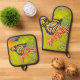 Set De Manoplas Naranja mariposa en diseño de flores rosadas