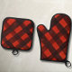 Set De Manoplas Navidades modernos pintados de rojo negro Tartán