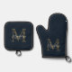 Navy blue and metallica gold monogram Oven Mitt & Pot Holder Set
