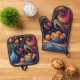 Tulipanes De Arte Contemporáneo Y Esferas Noche Oven Mitt & Pot Holset