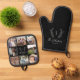 Crea tu propio monograma familiar personalizado, nombre y año establecido con un collage de 8 fotos de la cuadrícula que hace un elegante montaje rústico de tipo casa de campo para el horno blanco y negro y un juego de portamaletas. ++++++ Un regalo para Navidades, bodas, aniversario familiar, nuevo hogar o Día de Acción de Gracias.