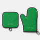 Monograma Nombre Verdes Oven Mitt & Pot Holder Set. Reemplace fácilmente el monograma de plantilla inicial y el nombre por el suyo propio. Elija un Oven Mitt y/o un Holder de Pot. Elija el estilo del menú desplegable entre el tejido plateado o el silicio negro.