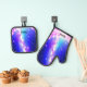 portaplatos de galaxia azul y rosa bonito y juego de mitt de horno, con tu nombre personalizado.