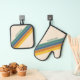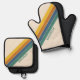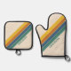 Cree su propio mitt de horno retro personalizado y portaplatos. Presenta un diseño de franjas vintage abstractas y un nombre personalizado en una tipografía de estilo clásico.