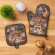 Muéstrale a tu asombroso papá lo maravilloso y amado que es con nuestro divertido y rústico falso grano de madera "El papá más grande del mundo" personalizado de foto del horno mitt y el set de portacolchones. El diseño presenta un falso fondo de madera con "El papá más grande del mundo" en diseño elegante de tipografía y el año en curso personalizado. Personalizar con nueve de sus propios recuerdos de fotos especiales. ¡Gran regalo para el Día del Padre, cumpleaños, aniversario y más! Diseñado por Moodthology Papery
