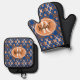 Los huéspedes podrán fusionar su cocina con el encanto del suroeste utilizando el estuche tipo mitt de horno de inspiración azteca y el set de soporte para ollas. Con un sorprendente patrón geométrico tribal en tonos neutros contra un fondo azul profundo, este conjunto le da un atractivo visual audaz a su espacio de cocina. Personalizar el color de fondo para que coincida a la perfección con tu decoración y añada tu nombre inicial para un toque realmente personalizado. Elevar el estilo de su cocina mientras disfruta de la practicidad y el diseño único de este conjunto de lo más necesario. Trátese o regístrelo a alguien especial para una mezcla de funcionalidad y estilo suroeste.