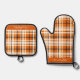 Set De Manoplas Otoño Plaid Burnt Naranja White Black