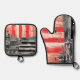 Set De Manoplas Oven Mitt & Pot Holders Red Pulse Abstract Design