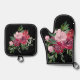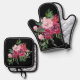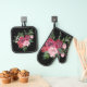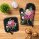 Diseño floral negro, rosa y rojo Potholder Oven Mitt Set