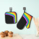 Cocine con estos magníficos olores de arcoiris o manitas de horno con obras de arte de la ropa y los coleccionables de Buttercup. Los fantásticos portamaletas y las cacerolas de horno cuentan con un hermoso arcoiris sobre un fondo negro. Disponible por separado.