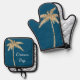 Set De Manoplas Palm Tree Purpurina Tropical Blue Gold