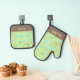 Elegante guante de horno con temática gastronómica y portamaletas, con un patrón de comida italiana de diferentes formas de pasta. Ambos tienen texto personalizable para que añada su propio nombre o mensaje