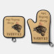Estas cacerolas de horno de temática de pato y portacolchones, personalizadas con texto y color de fondo personalizado, serían un regalo para el Día del Padre. Creé este patrón de pato a partir de la imagen de mi pintura acrílica titulada, a la orilla del pato.