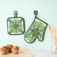 Set De Manoplas Patrón Abstracto De Floral En Verde Negro Sobre Bl
