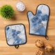 Un horno de acento mitt & pottholder Set de colores de tinta líquida de mármol azul oscuro, blanco y azul claro. El diseño es de ensueño, romántico y elegante, con trazas doradas y plateadas como el brillo de la brisa marina costera. Parece una textura abstracta de piedra de mármol y lava fluida al mismo tiempo. Este diseño se adapta perfectamente a las casas costeras y hace que la brisa entre en tu habitación.
