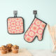 Set De Manoplas Patrón de Flores Retro de Fuzz Groovy Peach contro
