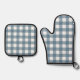 Set De Manoplas Patrón de Gingham azul