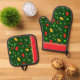 Patrón con hojas coloridas cayendo sobre fondo verde oscuro