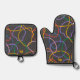Set De Manoplas Patrón de líneas onduladas abstractas coloridas