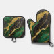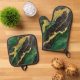 Patrón de mármol verde con juego de empuñadura de horno y soporte de maceta de oro