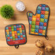 Añade un toque de color y alegría a tu cocina con este vibrante diseño de mosaicos con alegres cuadrados estilo edredón en rojo, amarillo, azul y verde. Perfecto para la cocina familiar, los momentos de cocción o los regalos cuidadosos, este animado patrón combina el encanto rústico con la elegancia lúdica. Con texto de personalizable para el nombre, convierte cada detalle de cocina en un accesorio personal y único.