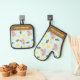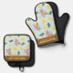 ¡Diseñado para los amantes de hornear con entusiasmo por la vida! Este encantador conjunto presenta un delicioso patrón de limones vibrantes, hojas de limón recién hechas y caprichosos utensilios de cocción -un whisky, cuchara y espátula- con un fondo azul claro. Ya sea que esté protegiendo las manos de los cristales calientes o que le añada un toque de encanto a su espacio culinario, estos portamaletas son tan funcionales como elegantes. La cita edificante tejida en el diseño: "Cuando la vida te da limones, haz galletas de limón" se puede cambiar para hacerlo único tuyo!