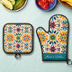 Añada un toque de color a su cocina con nuestro patrón de mosaico mexicano Oven Mitt y el juego de soporte de macetas! Con un diseño vibrante e intrincado inspirado en las tradicionales baldosas mexicanas, este conjunto aporta un toque festivo a sus aventuras culinarias. El mitt del horno es personalizable, lo que le permite añadir un toque personal con su nombre. Elevar la decoración de la cocina y hacer que la cocina sea más divertida con este hermoso y personalizado conjunto!"