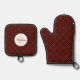 Tartán rojo trenzado de invierno elegante patrón Oven Mitt & Pot Holder Set. Cocina de Linen con tártaro rojo en el invierno. Un regalo elegante para cualquiera. Personalice Monograma con el nombre y la inicial de su personalizado.