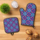 Set De Manoplas Patrón floral geométrico vibrante