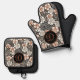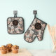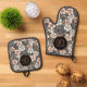 Set De Manoplas Patrón floral negro y rojo japonés personalizado