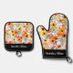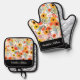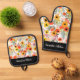 Set De Manoplas Patrón floral retro Nombre personalizado Cocina