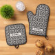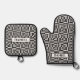 Set De Manoplas Patrón geométrico blanco y negro con nombre person