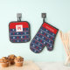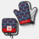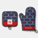 Set De Manoplas Patrón Náutico Blanco Y Azul Rojo