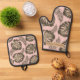 Set De Manoplas Patrón y nombre de hojas de palma rosadas y dorada